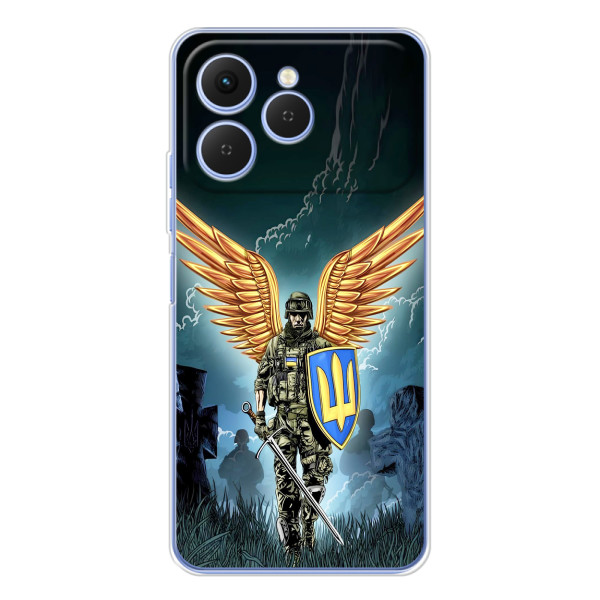 Отдайте дань настоящему мужеству вместе с патриотичным силиконовым чехлом с изображением украинского воина для вашего Tecno Spark 40.